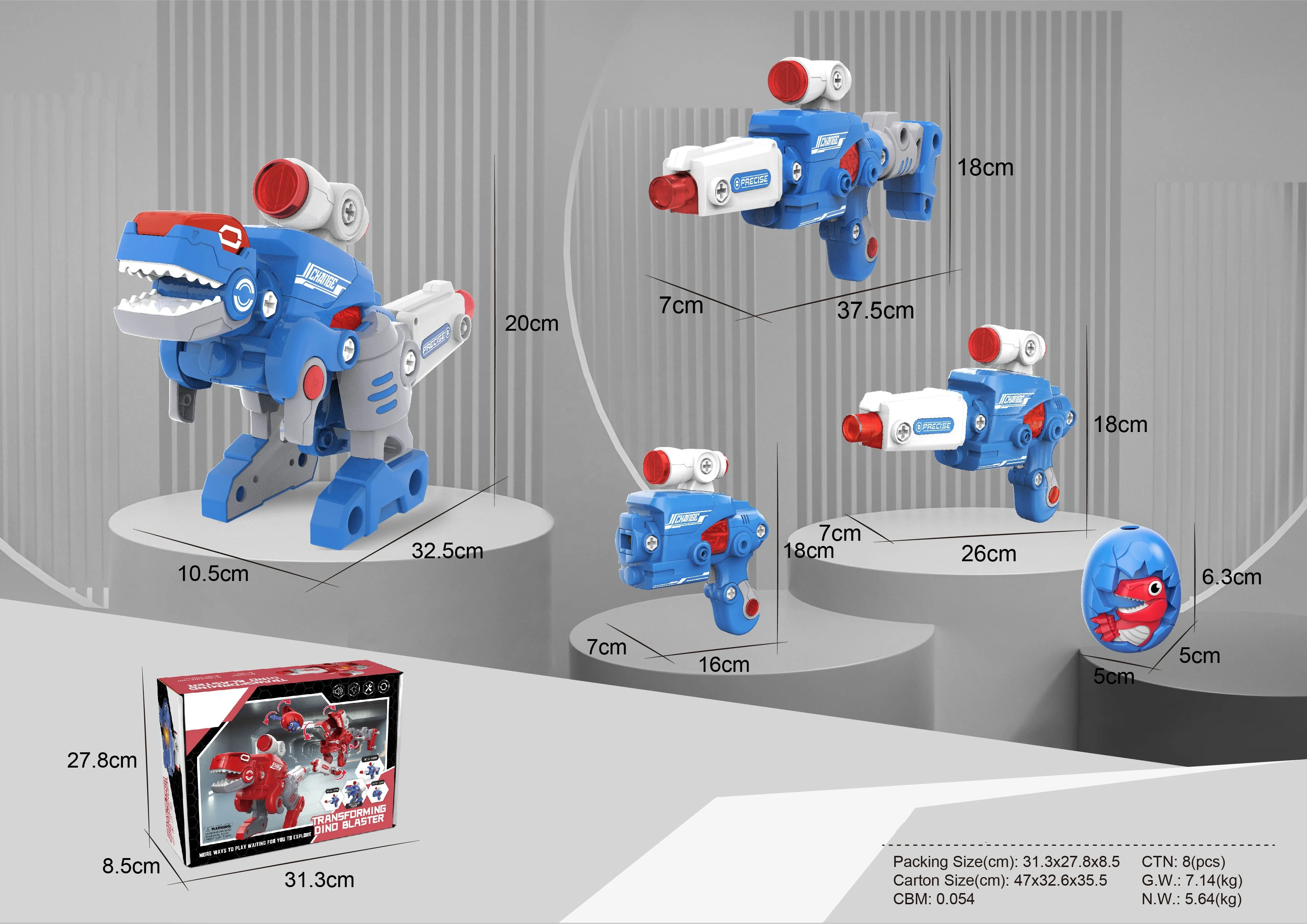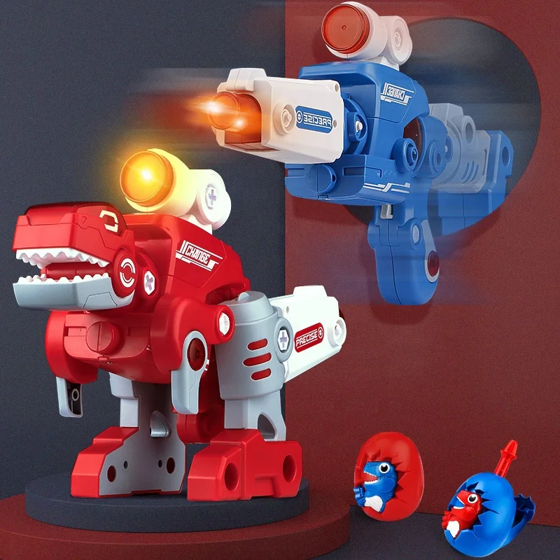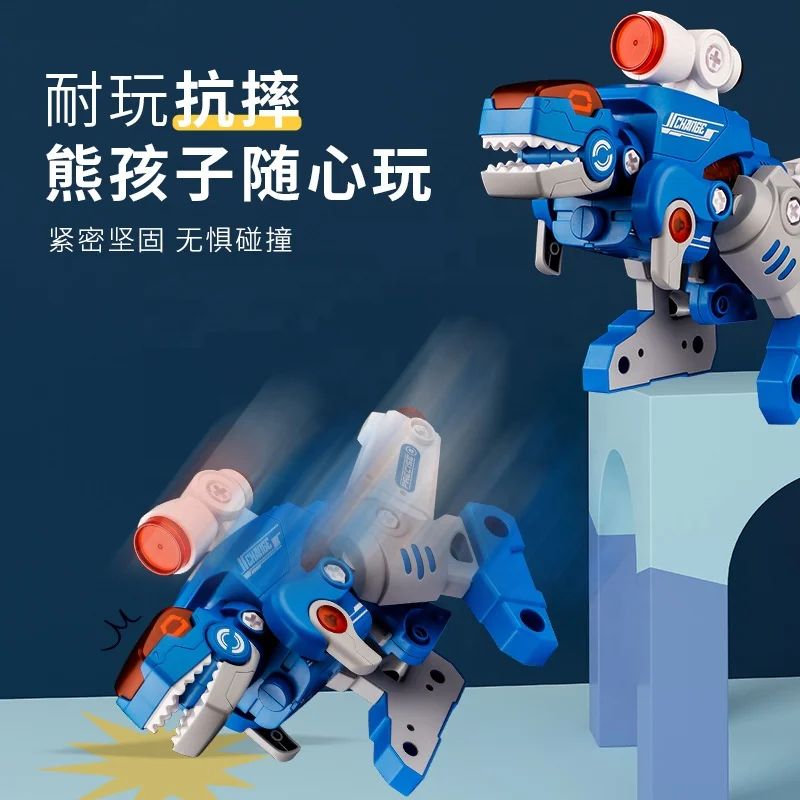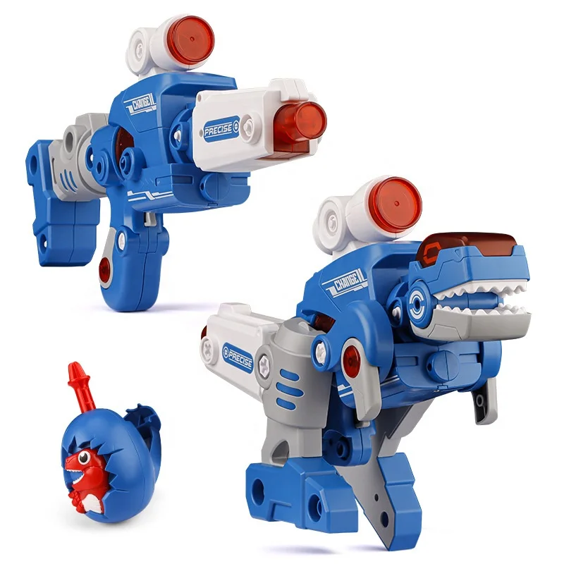 Hot Seller 32 Pcs Transforming Dino Blaster Creative and Changeable Shape DIY Assemble Dinosaur Gun with Light and Sound